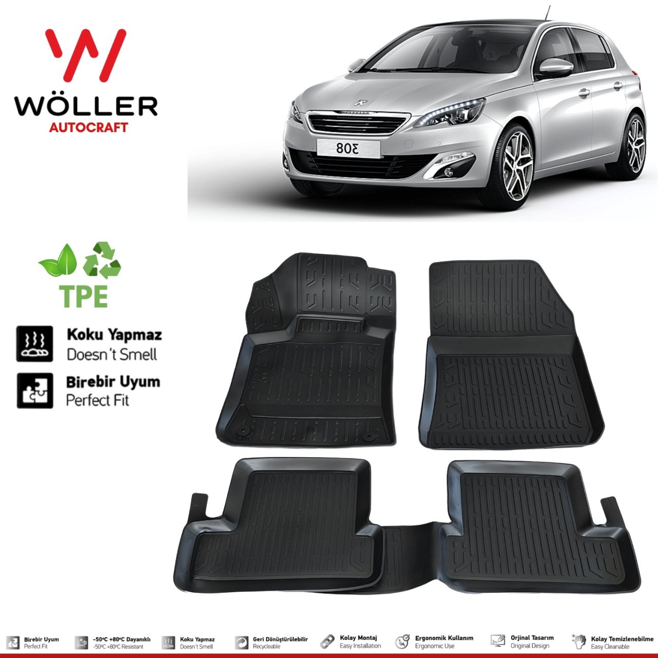 Peugeot 308 Paspas 2014 2021 Arası 3d Havuzlu Wöller Paspas